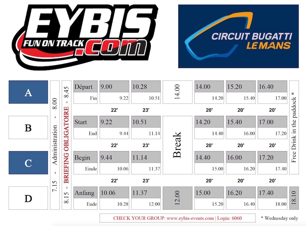 • 5 sessies vrij rijden per dag (22' | 23' | 20' | 20' | 20')